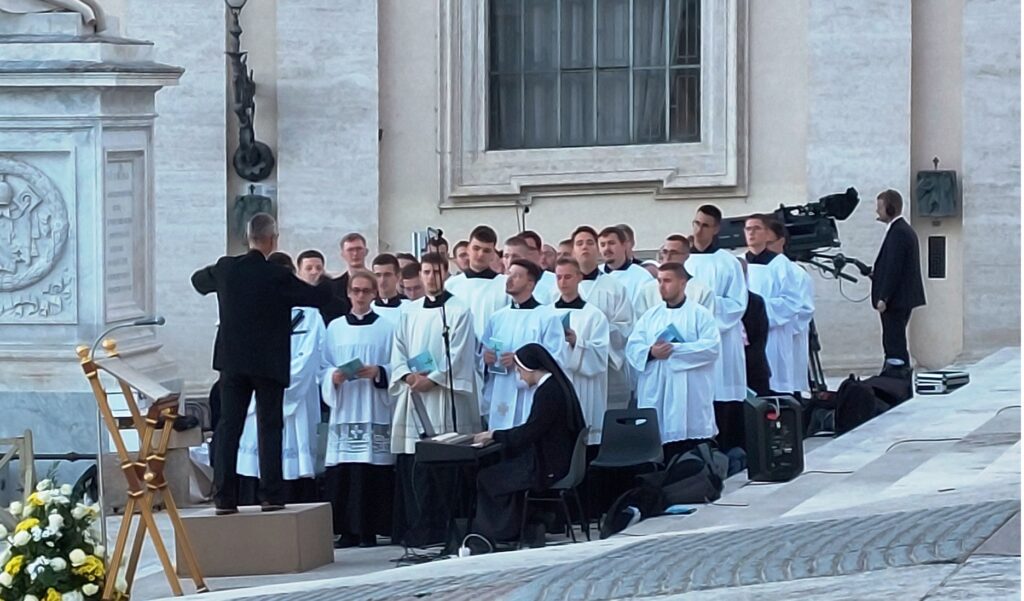 Pri dočeku i susretu s Papom, kao i na misnim slavljima na Trgu sv. Petra, te u bazilikama Svete Marije Velike i sv. Pavla izvan zidina, liturgijsko pjevanje predvodio je zbor zagrebačkih bogoslova pod ravnanjem Dražena Kurilovčana.