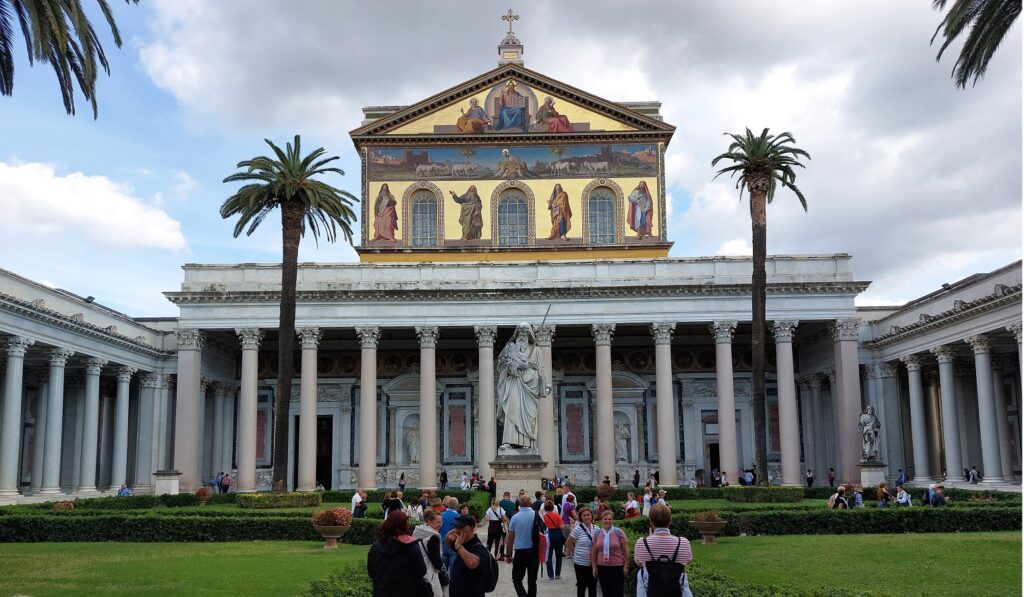 Petog dana, u četvrtak, dolazimo do Kalistovih katakombi, zatim do Colosseuma, pa se razilazimo i opet se tu susrećemo kako bismo otišli do bazilke sv. Pavla izvan zidina. Tu je popodnevno misno slavlje za mnoge hrvatske biskupije i nadbiskupije opet predvodio splitsko-makarski nadbiskup Zdenko Križić, a propovijedao vrhbosanski nadbiskup i metropolit Tomo Vukšić. Suslavilo je trinaest hrvatskih biskupa, među kojima je bio i apostolski nuncij u Italiji i San Marinu nadbiskup Petar Rajič. Nadbiskup Vukšić je, između ostaloga, spomenuo kako je o pobožnom hrvatskom hodočasniku u Rimu još početkom 14. stoljeća pisao i poznati talijanski pjesnik Dante Alighieri u svojem spjevu „Božanstvena komedija.“ Prije misnog slavlja molila se krunica, a na kraju mise zaorila se hrvatska himna „Lijepa naša“. U prijepodnevnim satima u bazilici sv. Pavla izvan zidina misno slavlje za, također, više hrvatskih biskupija i nadbiskupija predvodio je đakovačko-osječki nadbiskup Đuro Hranić, a propovijedao riječki nadbiskup Mate Uzinić koji je spomenuo kako je nakon požara 1823. godine krov bazilike sv. Pavla izvan zidina obnovljen slavonskom hrastovinom. U ovoj bazilici papa Ivan XXIII. najavio je održavanje Drugog vatikanskog koncila i pozvao Crkvu na „posadašnjenje“.