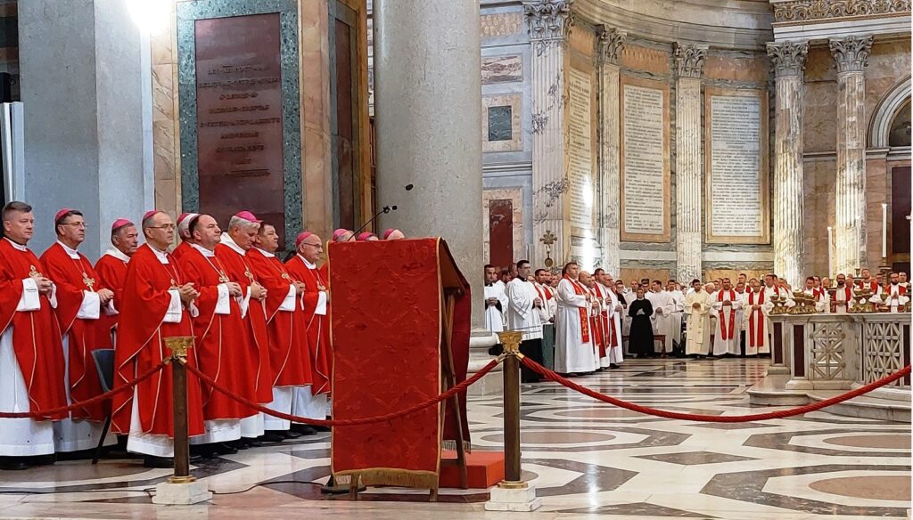 Nakon misnog slavlja vozimo se prema Anconi, ukrcavamo se autobusima u brod Jadrolinije Marco Polo i sutradan ujutro stižemo u Split. Tako je završeno hodočašće nade Hvarske biskupije u Jubilarnoj 2025. godini. Bilo je to treće nacionalno jubilarno hodočašće od uspostave samostalnosti R. Hrvatske. Oko deset tisuća hrvatskih hodočasnika nade iz Hrvatske, Bosne i Hercegovine i inozemstva u Svetoj jubilarnoj godini u Rimu je molilo na grobovima sv. Petra i Pavla, ispovjedilo se i pokazalo vjeru hrvatskog naroda te obnovilo zavjet vjernosti Svetoj Stolici. Svoju nazočnost najbolje su pokazali na Trgu sv. Petra i u dvjema velikim papinskim petobrodnim bazilikama, onu sv. Petra i onu sv. Pavla izvan zidina, a svoju vidljivost i zajedništvo hrvatskim zastavama i šalovima s hrvatskom šahovnicom. Kako bi dobili potpuni oprost u jubilarnoj godini prolazili su kroz Sveta vrata četiriju papinskih bazilika, ispovijedali se i sudjelovali na misnim slavljima i molili na nakanu Sv. Oca. Razmišljajući o svemu viđenom i doživljenom u veličanstvenom Rimu, može se zaključiti da to može učiniti – samo vjera kakvu su imali apostoli Petar i Pavao i kršćanski mučenici svih vremena.